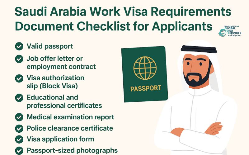 Saudi Arabia has a structured work visa process designed to ensure that only qualified and approved candidates enter the country for employment. Below is a complete guide to the Saudi Arabia work visa requirements and the document checklist every applicant should follow.
